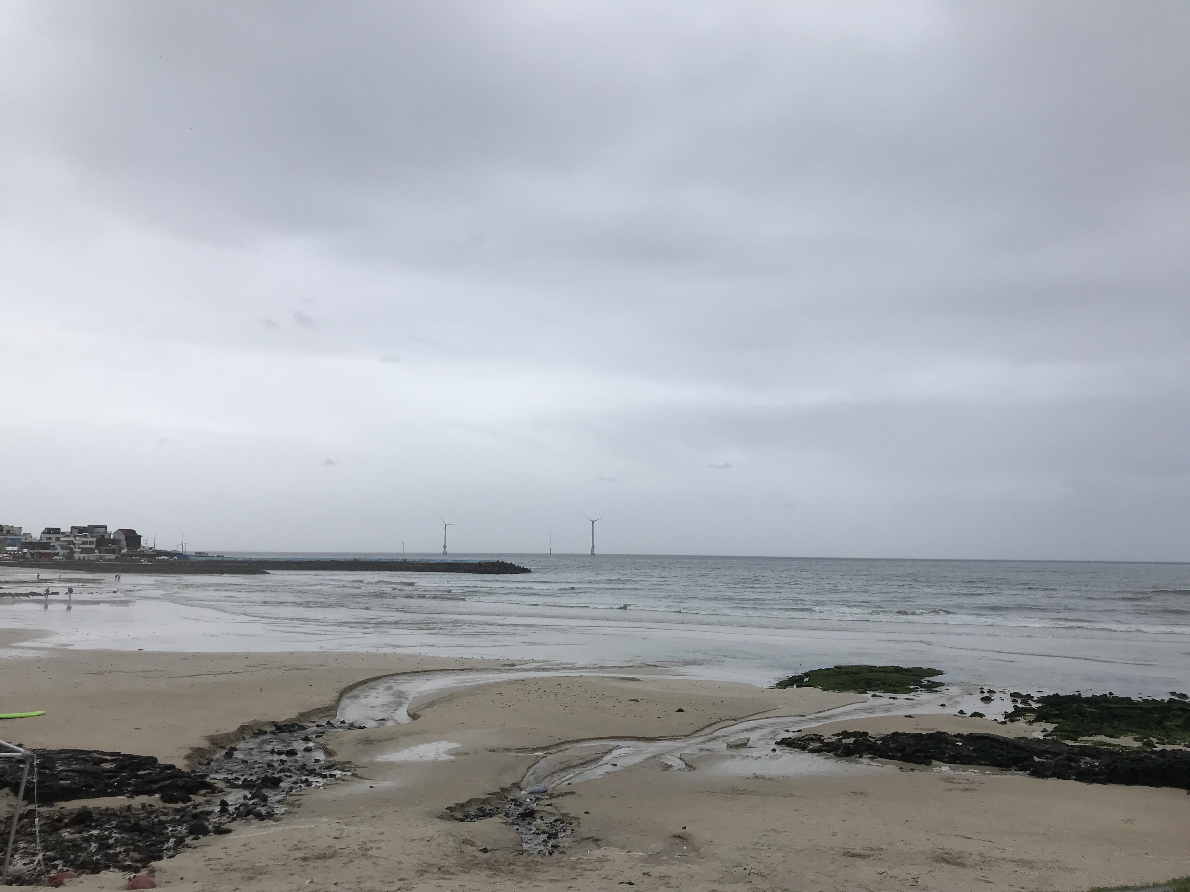 밤새 폭풍우가 몰아쳤고 아침에도 비는 계속됐다. 하지만 이젠 우리가 아는 그 '비'의 수준. 무얼할까 고민하다가 오늘 떠나는 친구와 '그래도 제주에 왔으니 바다는 가야지!'하며 함덕으로 향했다. 그런데 신비롭게도... 가는 길에 비가 완전히 그친다. 오호... 바람이 좀 불지만 오히려 바람 셌던 날들보다 괜찮았고 아이들은 모래놀이를 시작했다. 안나왔으면 어쩔뻔했어. 천만 다행이야!