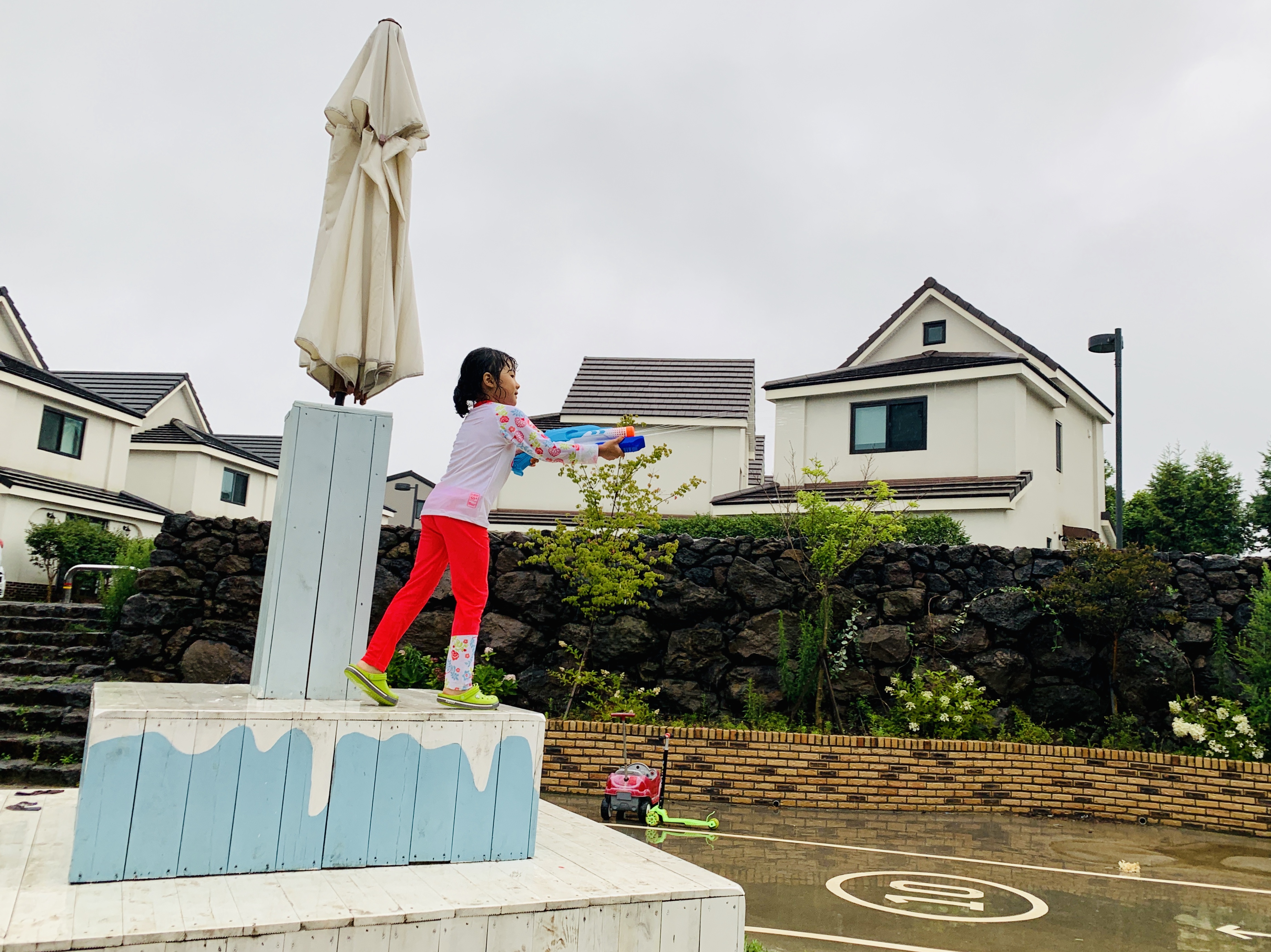 우리가 이곳에 온 첫날이 기억났다. 그날도 비가 왔고 비오는데 노는 다른 아이들을 보며 첫째가 흥분한 표정으로 나에게 물었지. "엄마, 나도 놀아도 돼?" 이 곳은 도시 아이들에게 그런 해방감을 주는 곳이다. 비가 오면 집에만 있거나 실내에 있는게 아니라 비=물총놀이인 곳. 아이들은 몸이 좀 추워질 때까지 그렇게 한참을 놀았다.