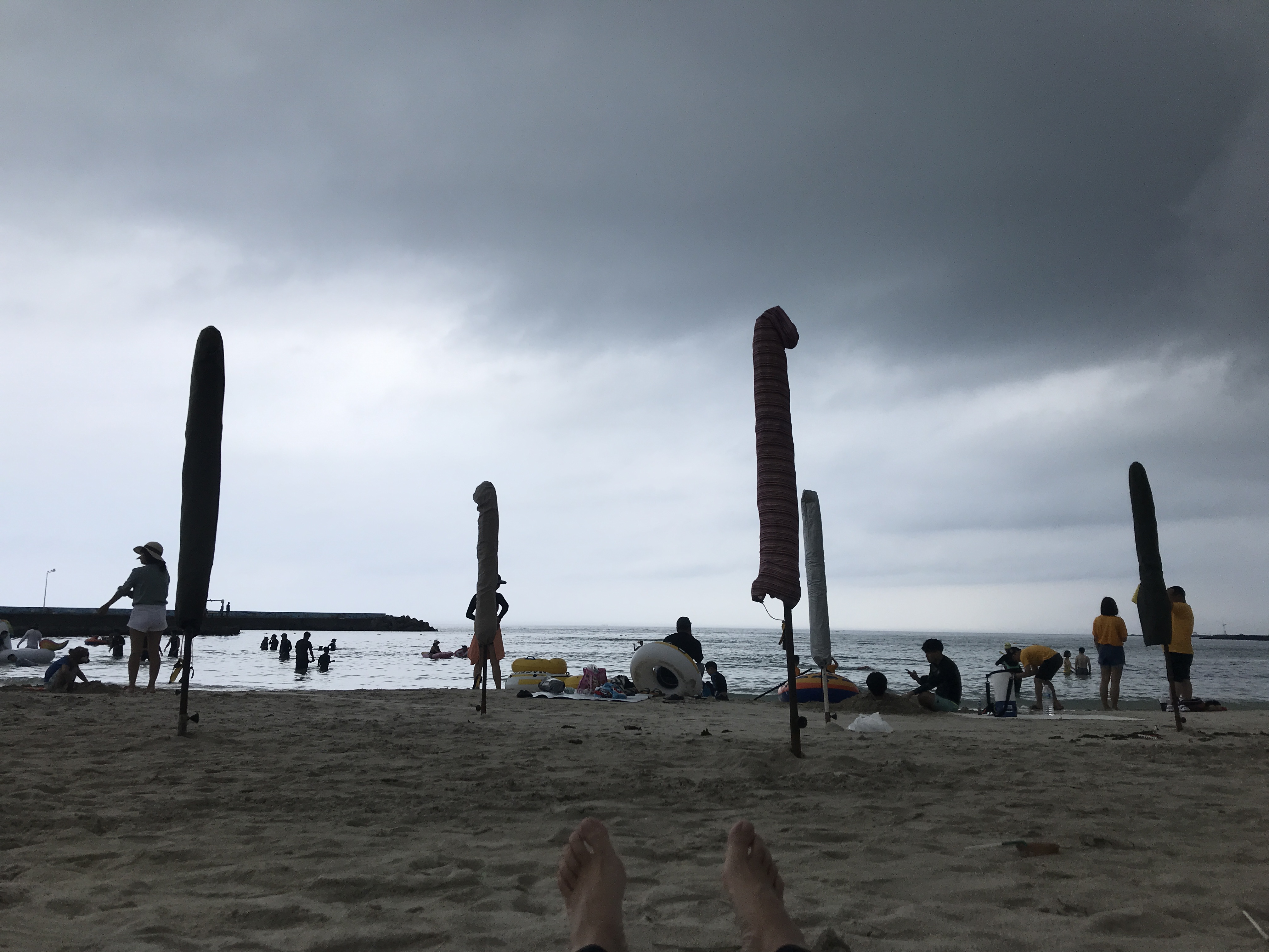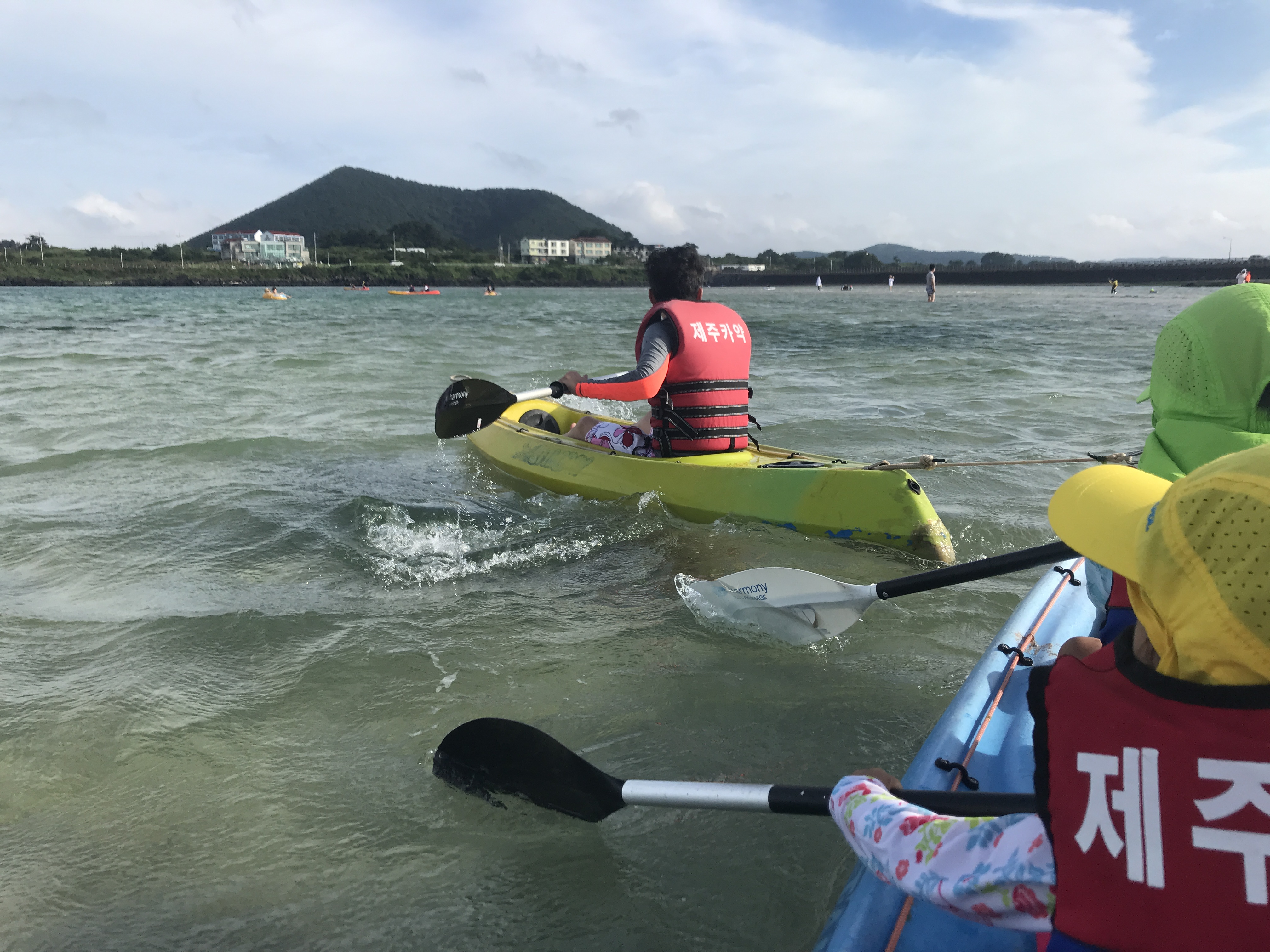 카약에서 내려 마지막 바다놀이를 했다. 나는 바닷물이 찰랑한 모래에 앉아 제주바다를 하염없이 바라봤고, 첫째는 아빠랑 돌 틈에서 뭘 잡느라 바빴고, 둘째는 물놀이 모래놀이를 했다. 날이 더워 6시 넘어서도 바닷가엔 사람이 많았고 우리도 그렇게 거의 7시가 되도록 바다에서 놀았다. 이날 바다에서 가장 아쉬운 사람은 나였다. 그냥 그렇게 계속 앉아있고 싶었다.