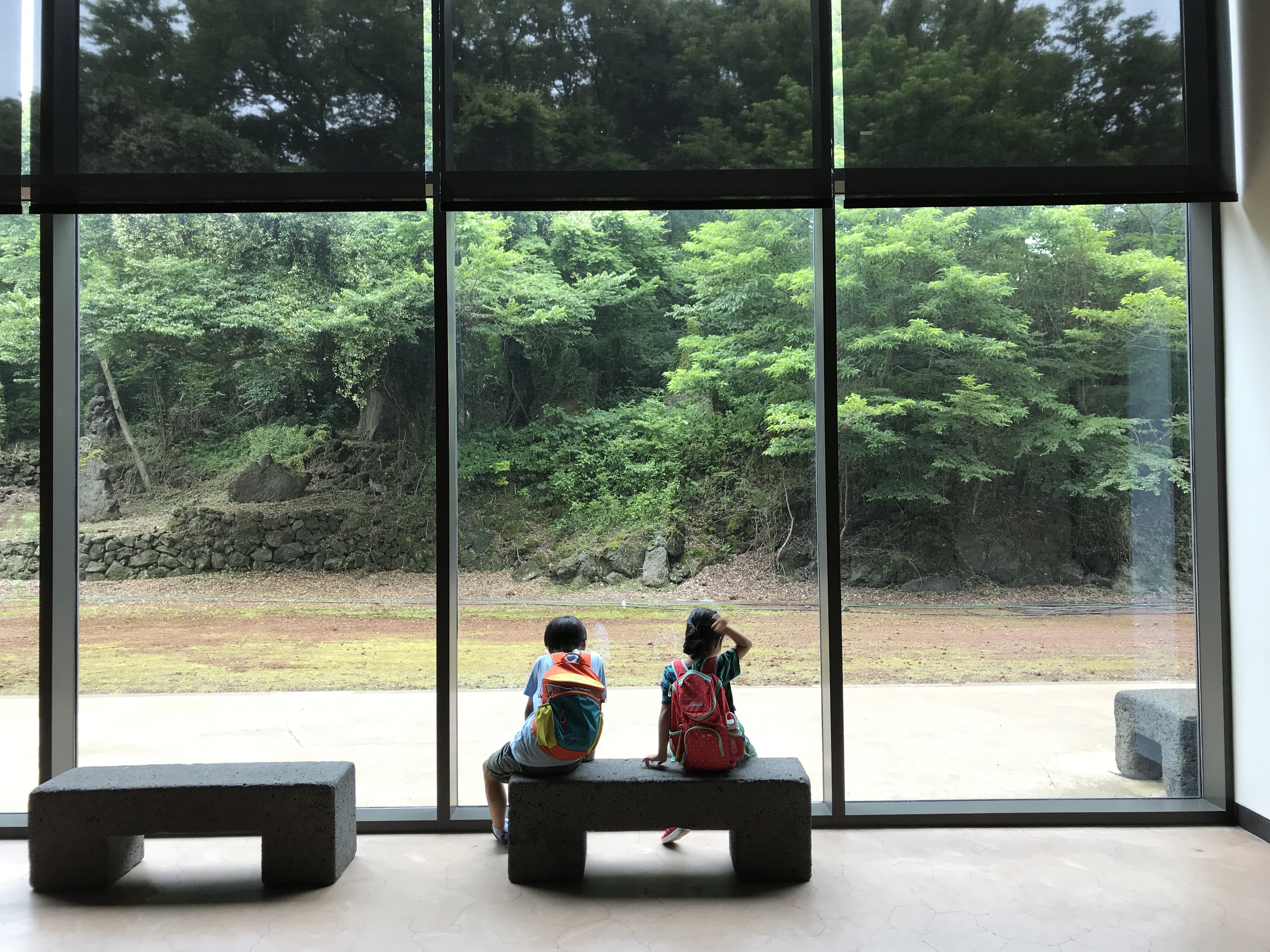 오늘 일정도 꼬인다. 사실 바닷가 카페에 가서 나는 책을 읽고 애들은 놀면 되겠다 싶었는데 비라니... 국수를 후루룩 먹고 들어와서 빨래를 구출하고(하지만 이미 꽤 젖었더라. 엉엉) 뭐할지 애들에게 물으니 첫째는 박물관, 둘째는 집에서 그림그리고 색종이 접고 싶다 한다. 둘이 정해보라고 했더니 둘째가 얼른 의견을 바꾼다. 대체로 뭐하고 놀지에 대해서는 둘째가 접는 편이고, 뭘 먹을지에 대해선 첫째가 접는 편이다. 그래서 우리가 가기로 결정한 곳은 제주세계자연유산센터. 비가 오면 가야겠다고 염두에 둔 곳이다.