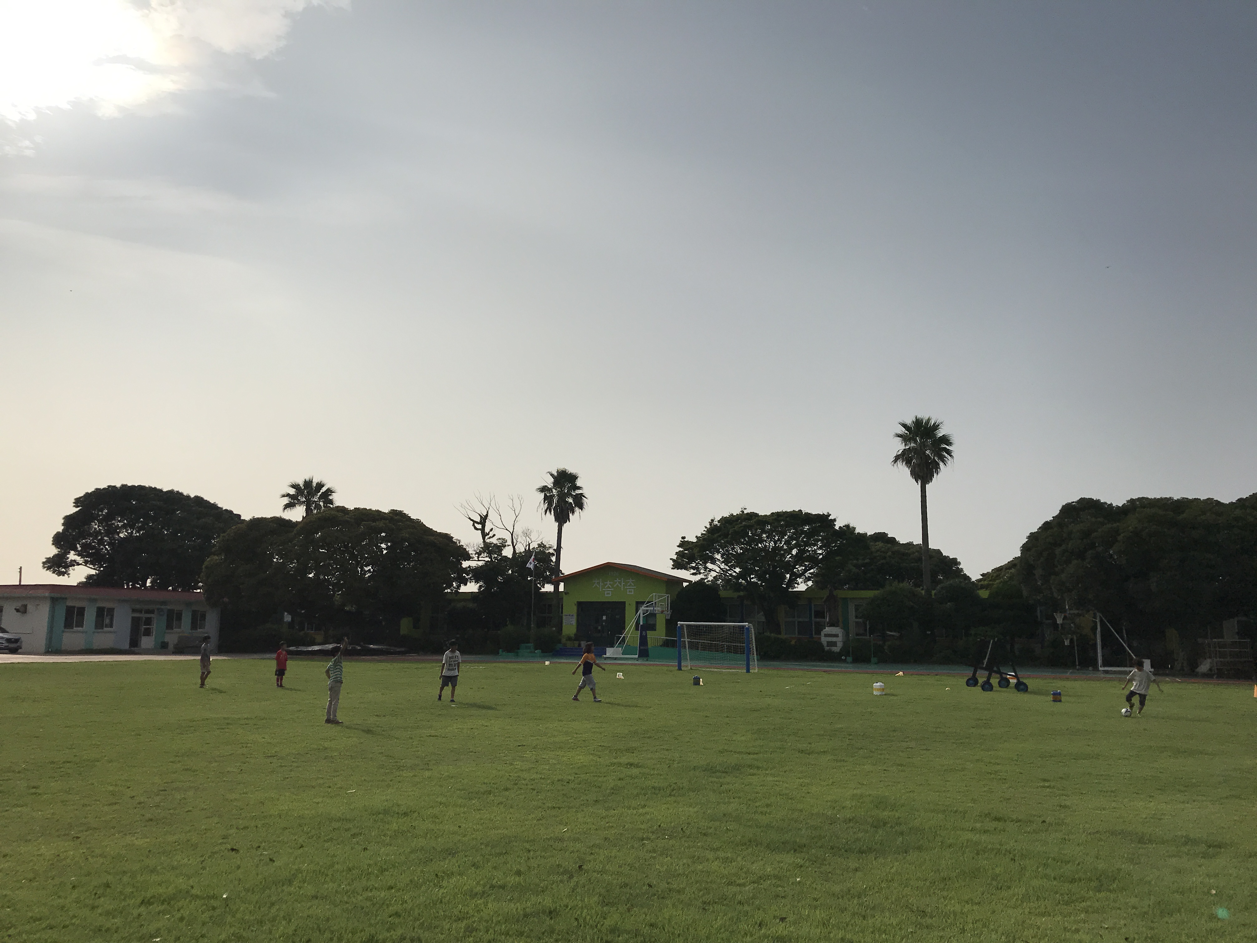 축구를 하고 싶었지만 모르는 사람에게 말걸기 어려워하는 첫째는 먼 발치에서 선흘분교 아이들의 축구를 물끄러미 바라보다 아이들이 다 가고나서야 공을 차기 시작했다. 축구 못하는 엄마와, 축구를 좋아하지만 운동신경 없는 아들, 축구를 좋아하는 딸 셋이 공놀이를 하니 은근 수준이 맞았다. 축구라니... 서울에선 그냥 아빠에게 맡기면 되는 종목인데 이게 무슨일이람. 그래도 넓은 잔디구장에서 공을 뻥 차니 재밌더라. :) 그렇게 땀을 흘리고 돌아오는길에 동네 구멍가게에서 폴라포를 사먹으니 그렇게 꿀맛일 수가.