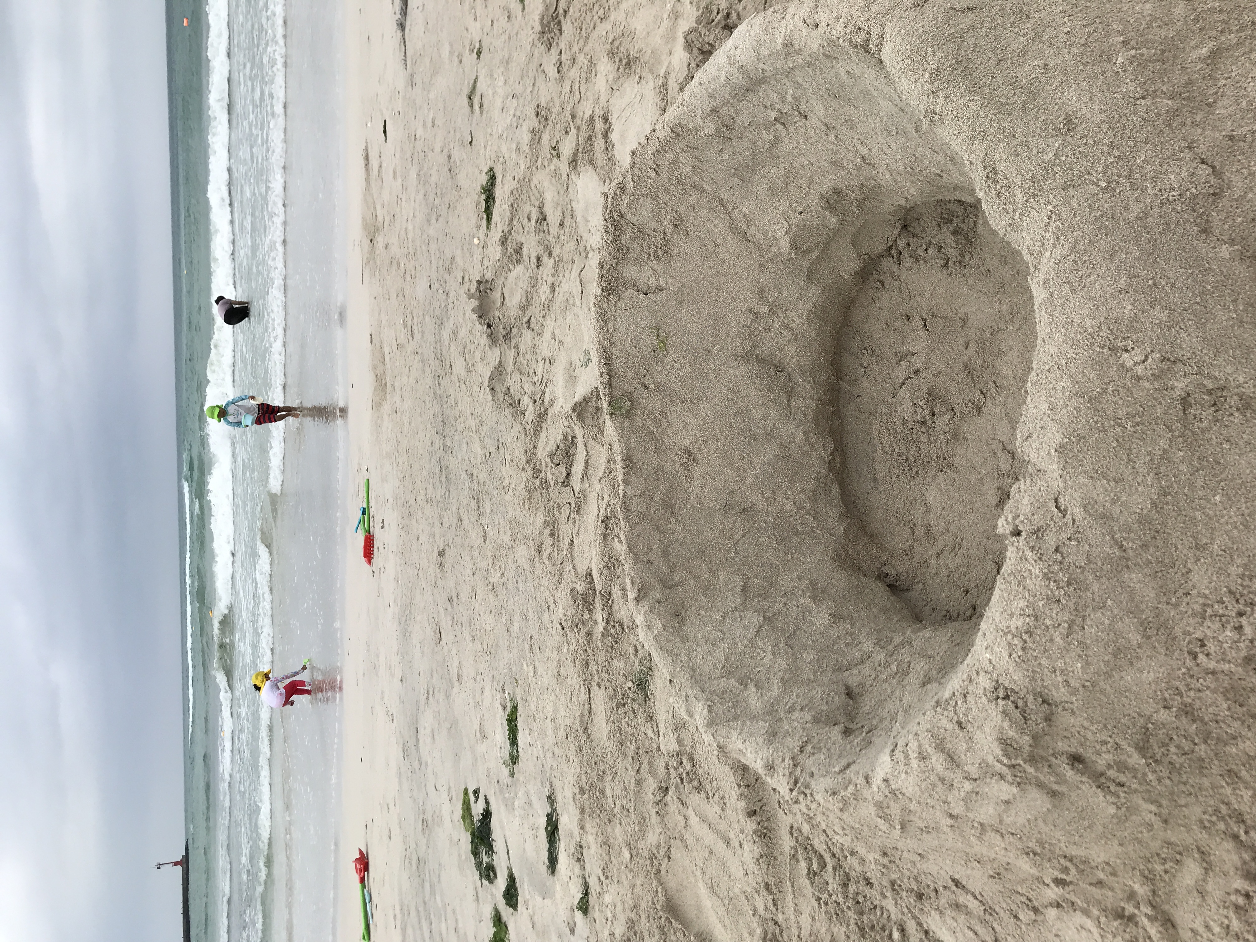 사람들과 파라솔 틈새를 비집고 들어가 돗자리를 주섬주섬 깔았고, 애들은 모래 삽을 들고 모래로... 터전에서 갈고 닦은 삽질 실력을 아낌없이 보여주며 땅파기에 돌입. 열심히 파고파고 또 팠는데 안타깝게도 밀물이어서 나중에는 물에서 놀았다. 둘째는 용감하게 튜브타고 싶다고 했고, 내가 수영복을 입지 않아 다음에 수영복 입고 같이 튜브타고 놀기로 했다. 내가 수영복을 입지 않은 이유는... 이렇게까지 본격 해수욕 시즌인지 몰랐지;;;